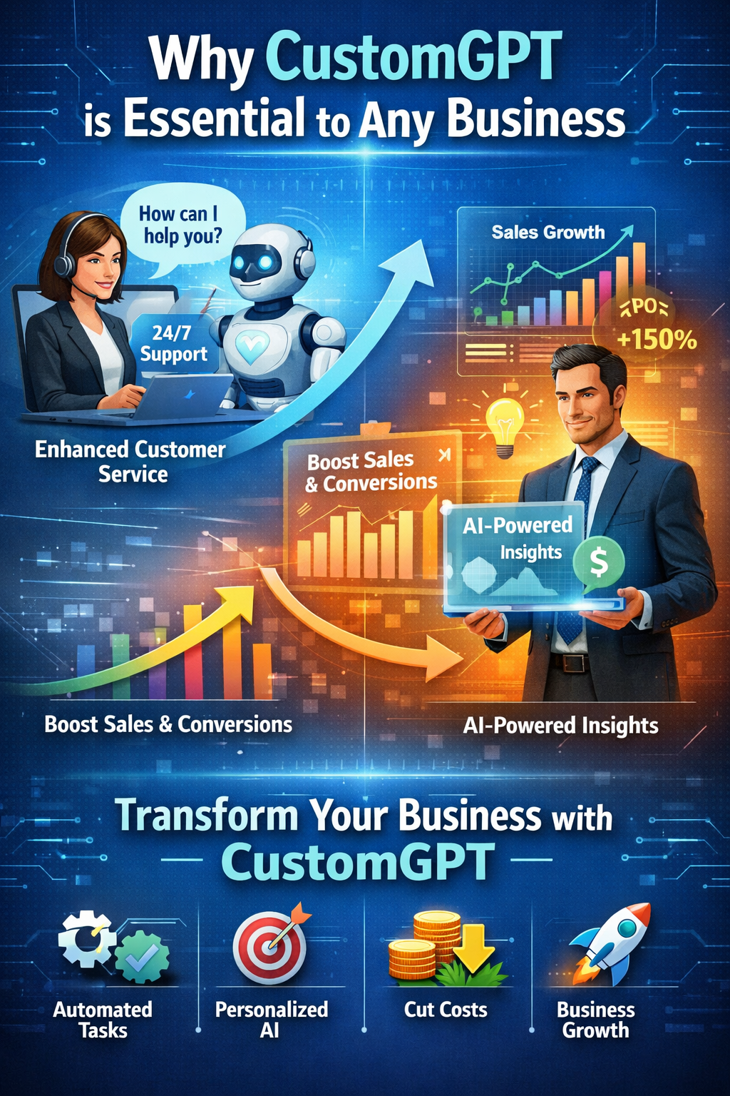 Whether you sell products online or offer services, every business needs more sales. CustomGPT enables: