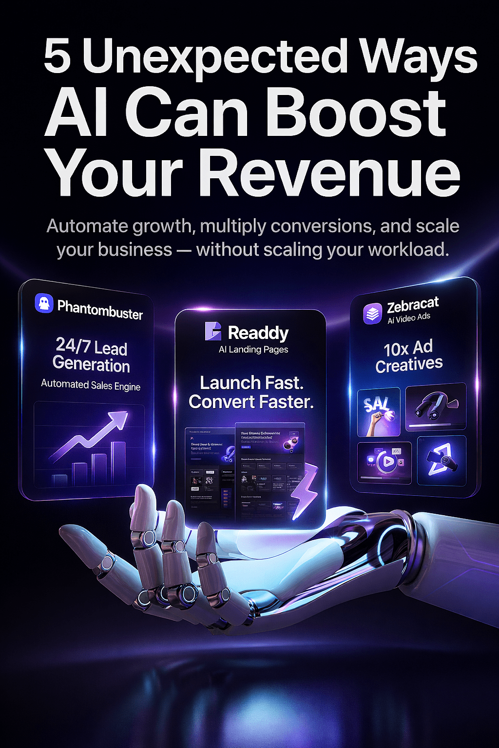 By combining tools like Phantombuster for lead gen, Readdy for fast pages, and Zebracat AI for content, you can grow your business while keeping your costs flat, or even lowering them.